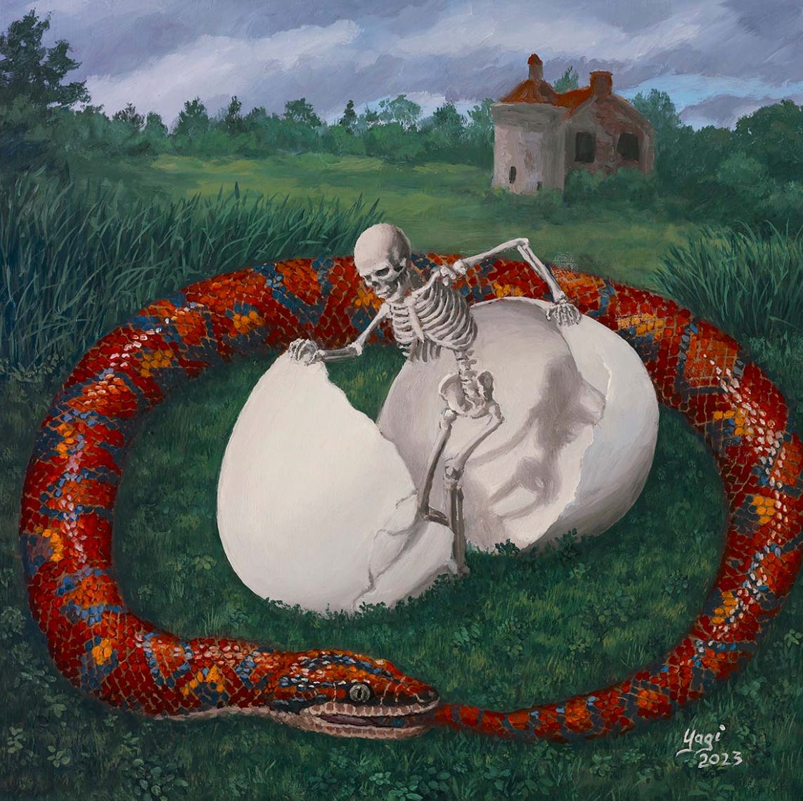 I am wrapping my head around knowing the exact moment I will no longer be alive, and I like the idea of being a toddler with an undeveloped brain, ignorant and happy. Time has protected us from being too aware of the end, with babies’ brains running on instinct, animalistic in infancy.